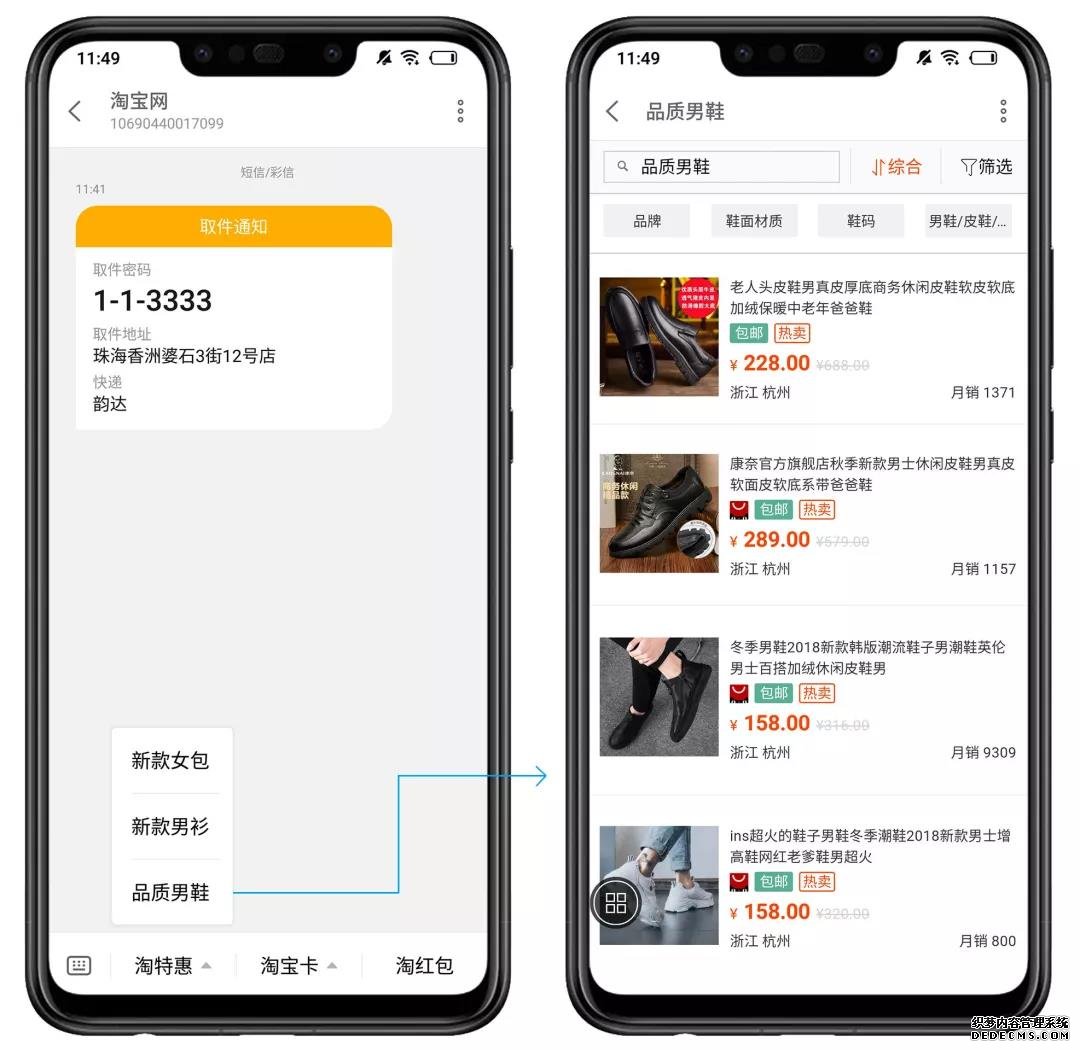 (2)在收到發貨提醒時,短信會自動匹配“單號查詢”的卡片按鈕,提供物流查詢的業務場景服務。