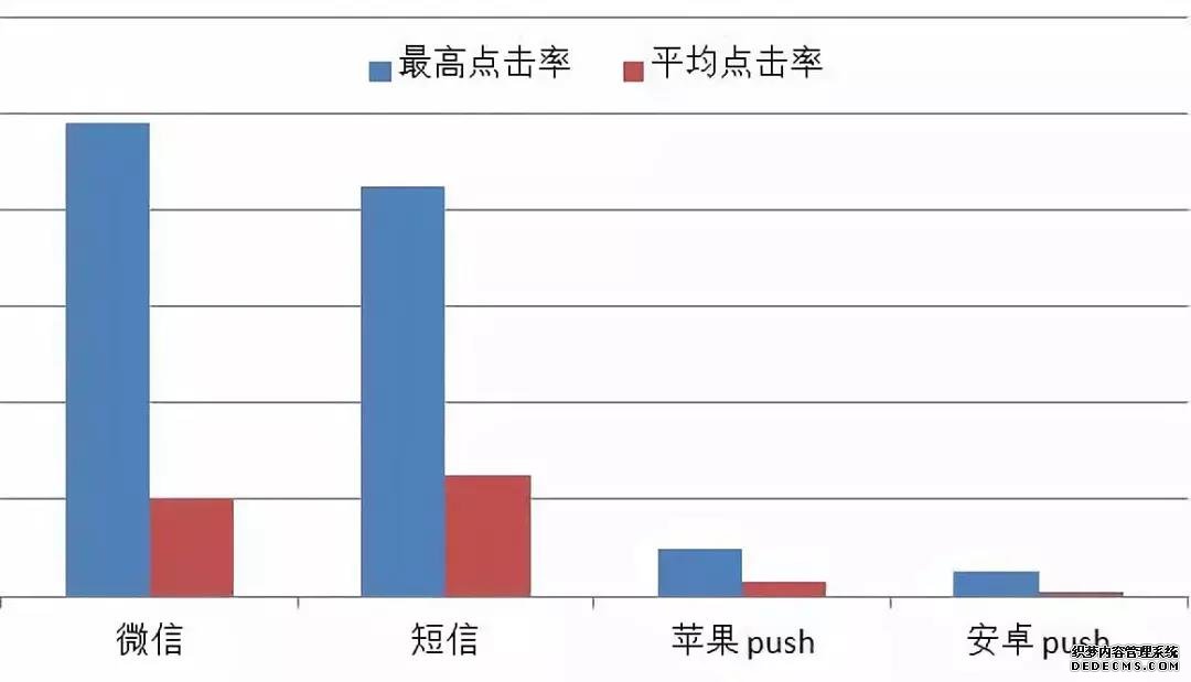 從各渠道的最高點擊率和平均點擊率來看,微信服務號>短信>蘋果 push>安卓 push; 其中,微信的最高點擊率高于其他渠道,但平均點擊率與短信相比差距不明顯。