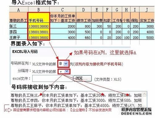 使用巨象企信通短信群發軟件的定制短信功能,財務可將EXCEL表格中工資條以短信方式批量快速地發送到員工手機上,一鍵搞定。