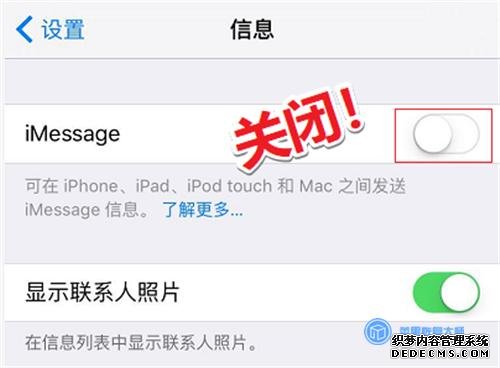 想要避免以上尷尬的局面出現(xiàn),我們需要打開手機【設置】-【短信】,關閉【iMessage】再進行短信群發(fā)操作!