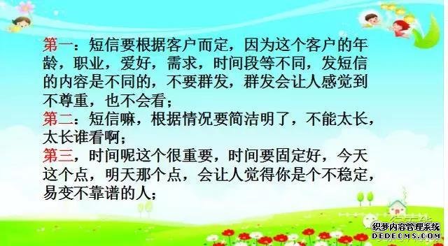 3、地產短信群發頻率和時間段有講究,除了挑選適合的時間段進行有頻率的發送短信效果更佳之外,運營商對于房地產短信通道的要求比較高,對于短信發送時間和發送頻率都有一定的要求。