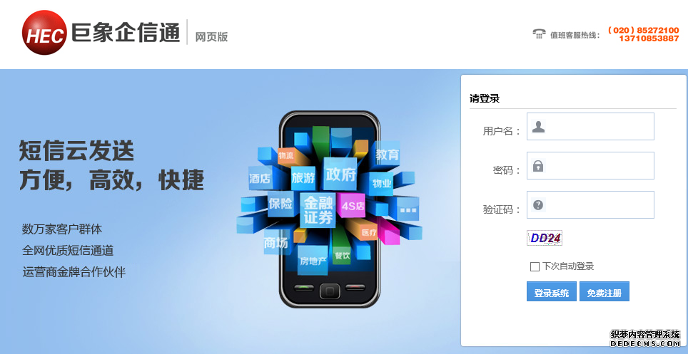 短信群發,彩信群發,短信群發軟件,廣州巨象計算機科技發展有限公司是一家致力于為企業提供互聯網、通訊技術應用服務和解決方案的高科技公司,具有良好的國內外資金和技術背景;是國內最早投入研發企業短信應用和企業網絡電視臺系統的公司之一,業已成為廣東地區最大的移動商務產品與解決方案的提供商和優秀的電訊服務品牌企業。其主要業務有: